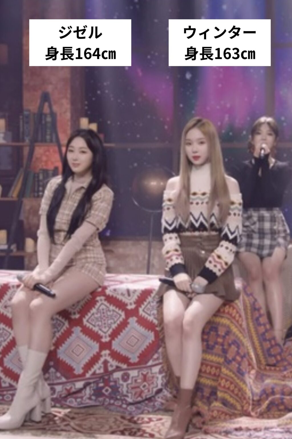 身長も極端に違わないaespaメンバーですが比べて見ると、ジゼルさんの座高の低さからも足が長いことが納得できました。