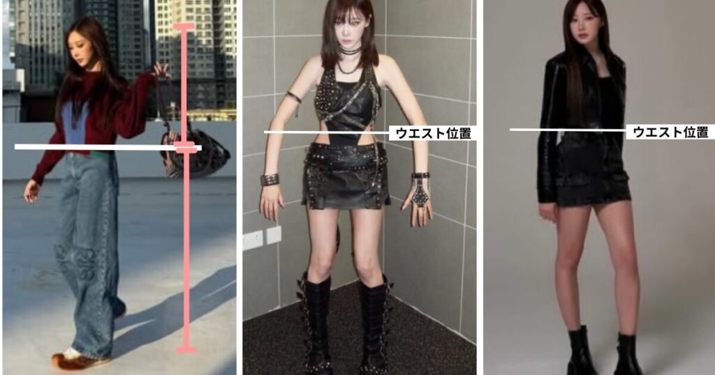 aespaジゼルさんは画像から見ても分かるように、ウエスト・腰の位置がとても高くそれだけ足が長いことがよく分かります。