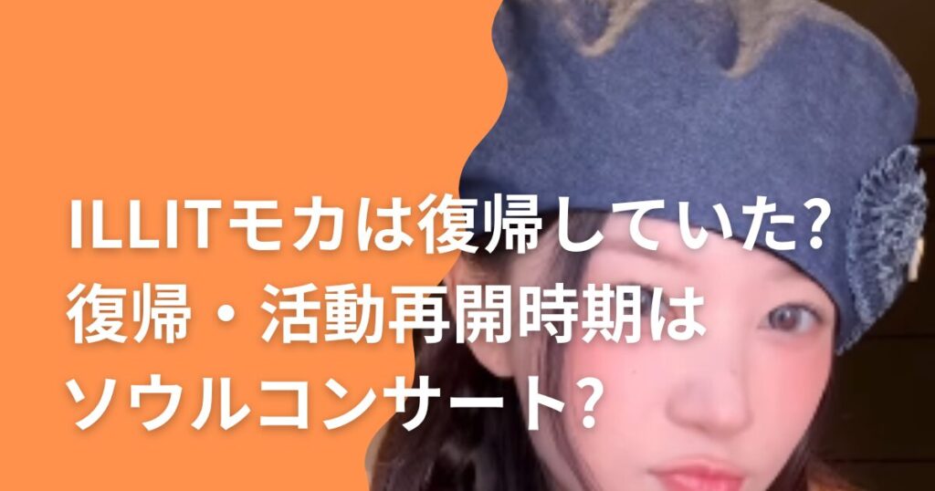 ILLITモカさんの復帰・活動再開時期に関しては、細かい情報は出ていませんでした。