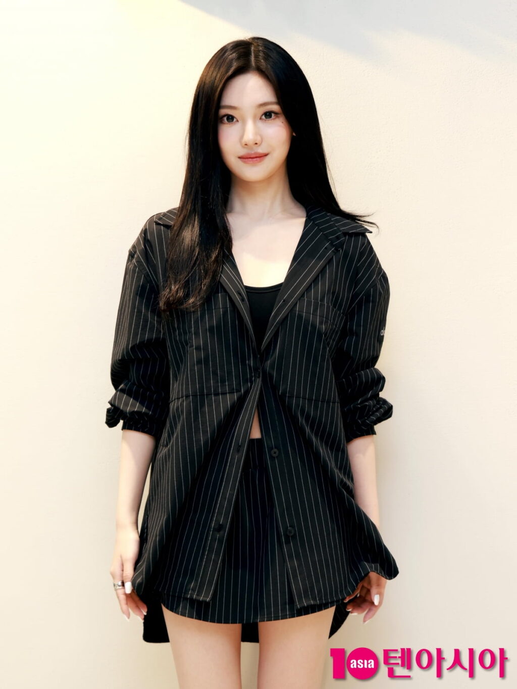 aespaのニンニンさんの代表的な髪型、黒髪ロングヘアです。