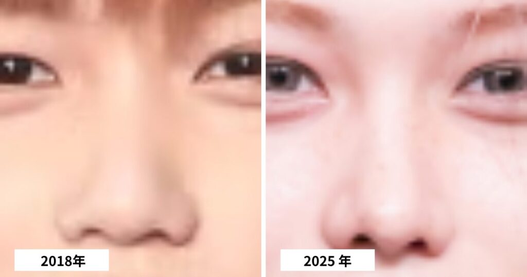 デビュー当初と現在(2025年)を見比べたら、鼻の変化が確認でき、プロテーゼ挿入かヒアルロン酸注入の可能性も否定できないことが分かりました。