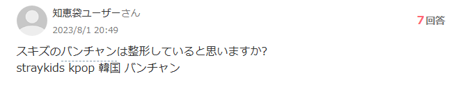 StrayKidsバンチャンさんの鼻が綺麗と言う声も多い中、”バンチャンさんの鼻は整形してるの?”とバンチャンさんの整った鼻に疑問を持つ声も上がっていました。
