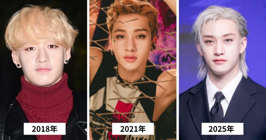 StrayKidsデビュー後の2018年頃から見ても、メイクの変化も大きく、顔の雰囲気が都度変わって見えるのが分かります。