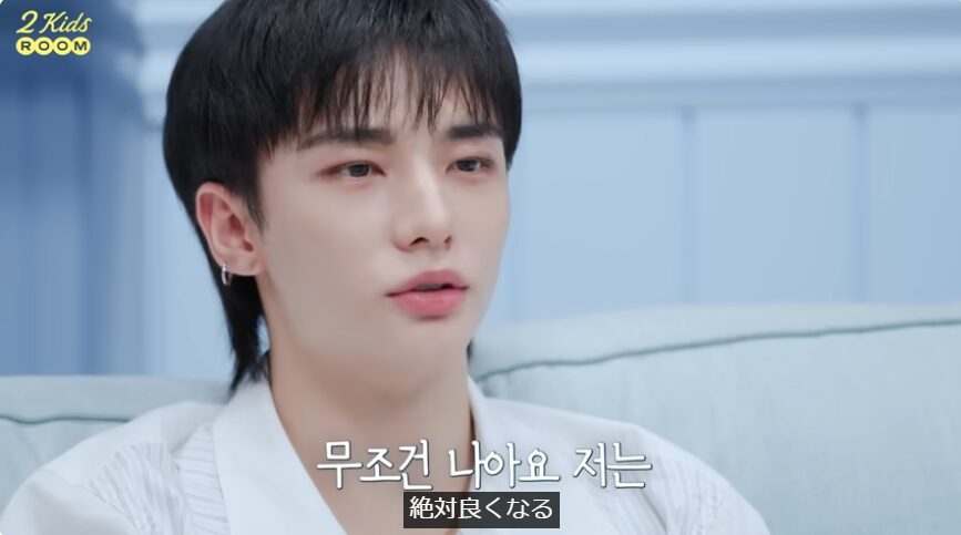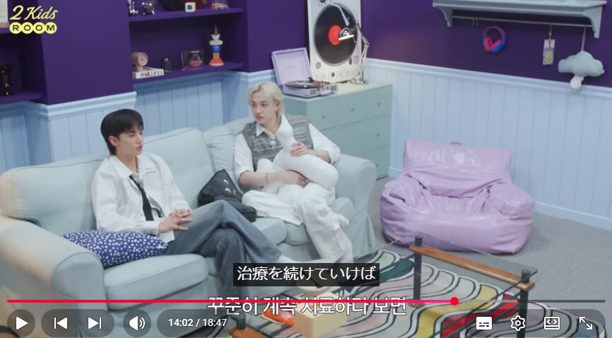 ヒョンジンさんが、2025年11月のStrayKidsのYouTubeチャンネル「2Kids Room」内でも、声のことで悩んでいたことをStrayKidsリーダーのバンチャンさんに話していました。